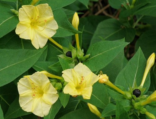 Die Blüten öffnen sich erst gegen Abend, bzw. wenn es kühler wird, was ihnen zusätzlich den Namen "Abendmakeup" (夕化粧 ゆうげしょう) einbrachte. Ihre leuchtende Farbe und ihr Duft lockt Nachtfalter und Schwärmer an.