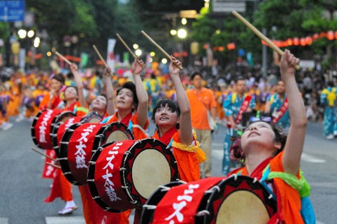 Und das Sansa Odori Fest in Morioka (盛岡) in der Präfektur Iwate (岩手). Dieses Fest ist vor allem ein Tanzfest, bis zu 20 000 Menschen Tanzen in mehreren Gruppen zu den Klängen der traditionellen Taiko Trommeln.